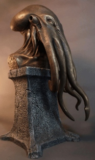 The Key of Cthulhu: Sealed in a sunken crumbling temple in a primordial jungle bordering two warring, desperate lands, the Key of Cthulhu has been discovered and brought to the light of day. It’s bronze skin is slick and weathered by the countless years of futile caressing by blind and feeble-minded worshipers. The dark alien stone of its pedestal bears the wear of millennia of dripping onyxian stalactites and the crawling of obscene, alien insects.  A lone surviving member of Joyner Studio’s first expedition was found clutching this very same idol in his pale bloodless hands, blind and gibbering in an exotic dead language, “Ph’nglui mglw’nafh Cthulhu R’lyeh wgah’nagl fhtagn”.