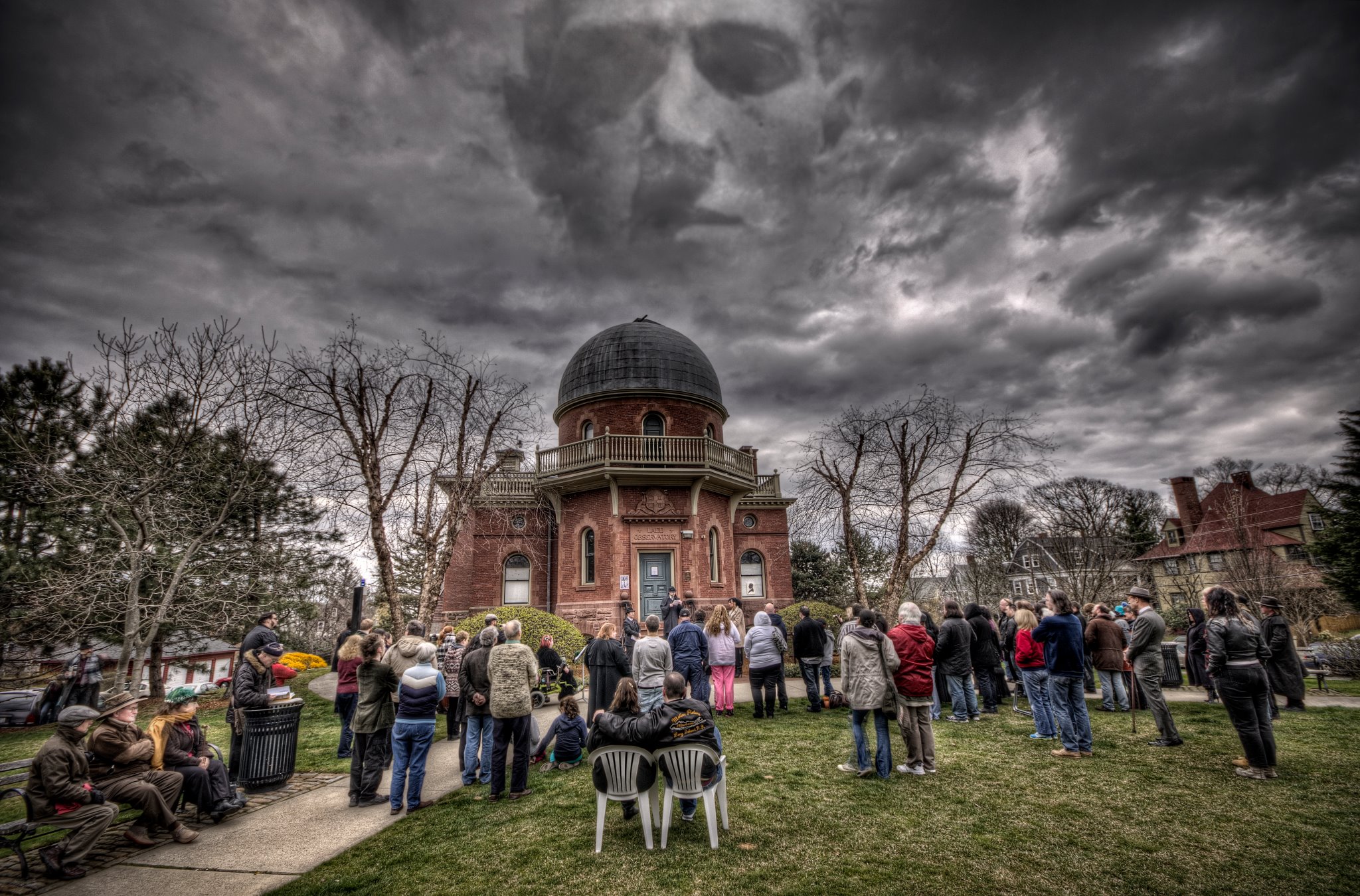 April 1st, 2012: I attended a really intense gathering to celebrate the literary legacy of a master writer of horror fiction. The annual H.P. Lovecraft Service of Tribute took place on Sunday, April 1, 2012 on the front ground of Ladd Observatory, built in 1891 and frequented by H.P. Lovecraft in his boyhood years. With this occasion the crowd, led by Carl Johnson, commemorated the 75th anniversary of the author’s untimely passing.