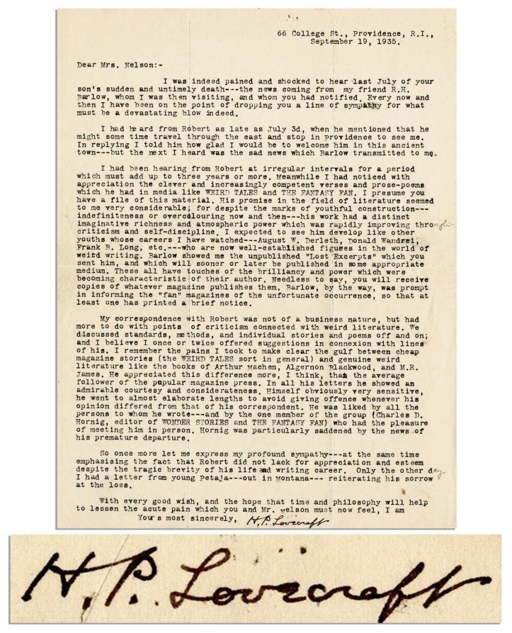 Odd that HPL would type this letter, given how much he loathed typing. Just sayin’.
