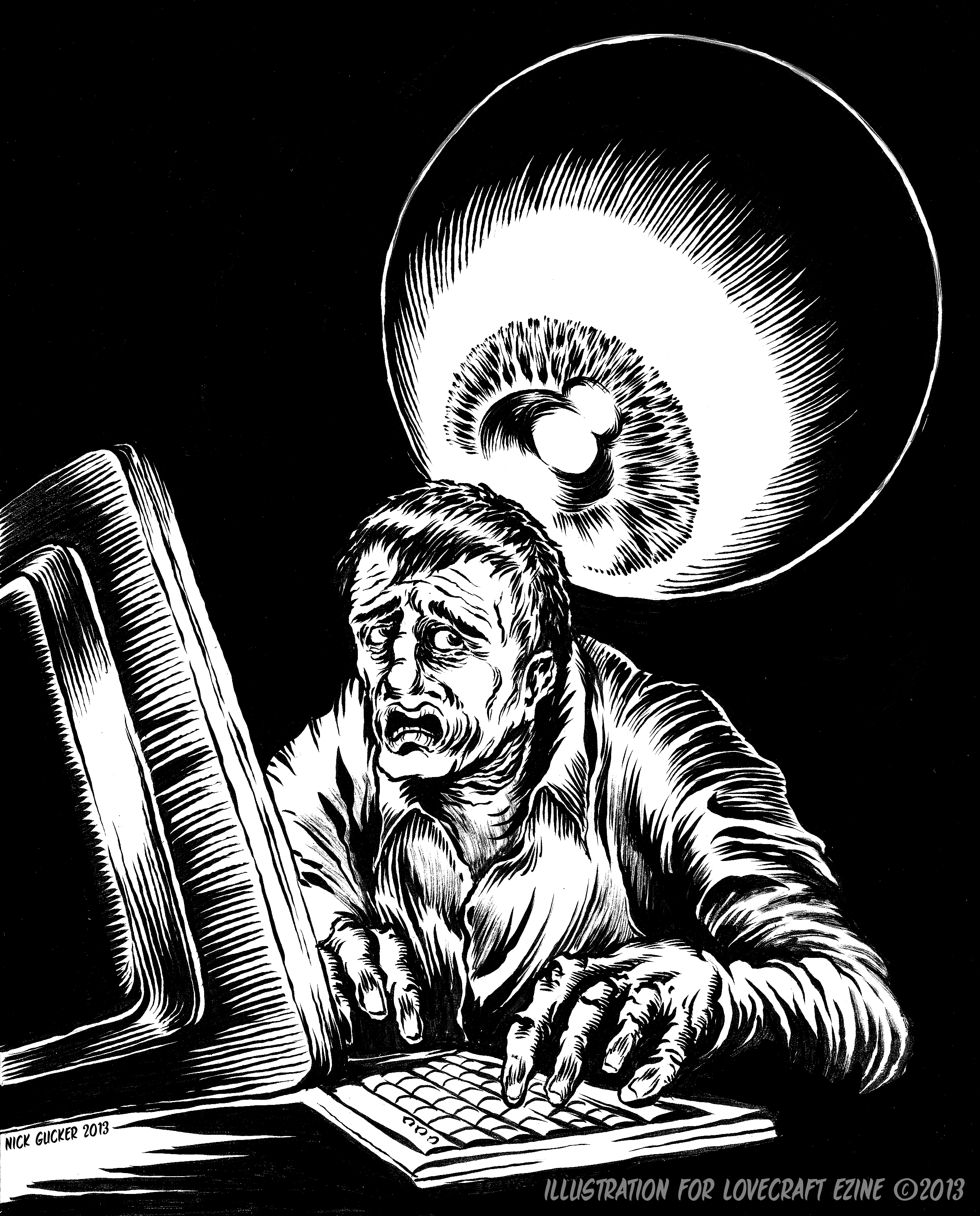 I’m lucky to have some very talented artists illustrating The Lovecraft eZine stories. Here’s some artwork from the last couple of issues: