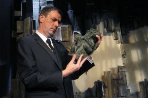 Blocker adapted the story along with award-winning director Dan Spurgeon. Choosing to use a single set with shadowplay and lighting utilized as scene changes, Johnny Burton and his puppet crew do just enough to tantalize the audience with glimpses of the beyond to suggest the horror that comes with such “unspeakable” acts as the Cthulhu cultists get up to.