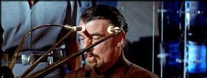 When the planetary force resurfaces, first sabotaging the Klystron transmitter then attacking the ship, Adams and the ship’s Doctor seek answers at Morbius’s home and the Krell lab. There while Adams argues with Morbius over the need to evacuate Altair-4 – Morbius refuses to interrupt his Krell study – the Doctor uses the Krell intelligence enhancer, in hopes of discovering the reasons behind the renewed assaults.