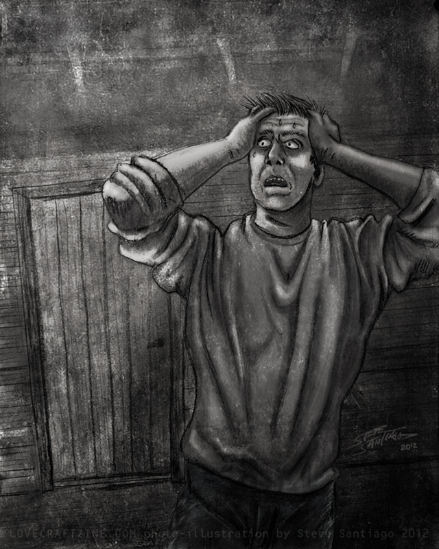April 29 This will be my last entry. I now realize that, even if help did come, even if they somehow managed to get me out of here, it would now be too late for me. You see, more and more lately I’ve been scratching at my rashes, unable to stop myself. As I scratched and dug at them last night I accidentally tore open one of the larger blisters, and when I moved away the torn skin, I saw that inside of it there was an eye, like the ones on that thing outside. A tiny, white grape…staring up at me from my own skin. I cut it out, but I know it doesn’t matter at this point. I know that for whatever reason, it’s turning me into something else, trying to make me into something inhuman. I am not going to let it. I’ve used the rope I found to tie myself a noose and I’ve hung it from the rafters up in the loft. It should be more than strong enough to hold me, or at least for as long as I should need it to. With any luck, it will be long enough to break my neck when I jump. I think I deserve that much. I am going to die, and I am going to die as a man, as a human being. It has taken so much away from me, so very much, but I will not let it have this. If you find this journal, if you are reading this, then get out. Leave now, before it knows you are here, before it traps you like it did me. I can only hope that my jump from here will be into oblivion, that there is nothing waiting for me on the other side. Katy, I love you. A lifelong passion for strange fiction and the works of Lovecraft has led Brad Shelby to write one of his first stories, and the first to be published. Having grown up in small town Oklahoma, he has always been drawn to the themes found in Lovecraft’s work such as the isolation found in the countryside and the notion that some small towns and country homes are not what they might seem to be, and this shows prominently in his work. While this is his first published piece, he plans to continue writing and exploring the worlds of strange fiction, and it will hopefully not be his last. Story illustration by Steve Santiago. If you enjoyed this story, let Brad know by commenting — and please use the Facebook, Twitter, and Google Plus buttons below to spread the word. Return to the table of contents
