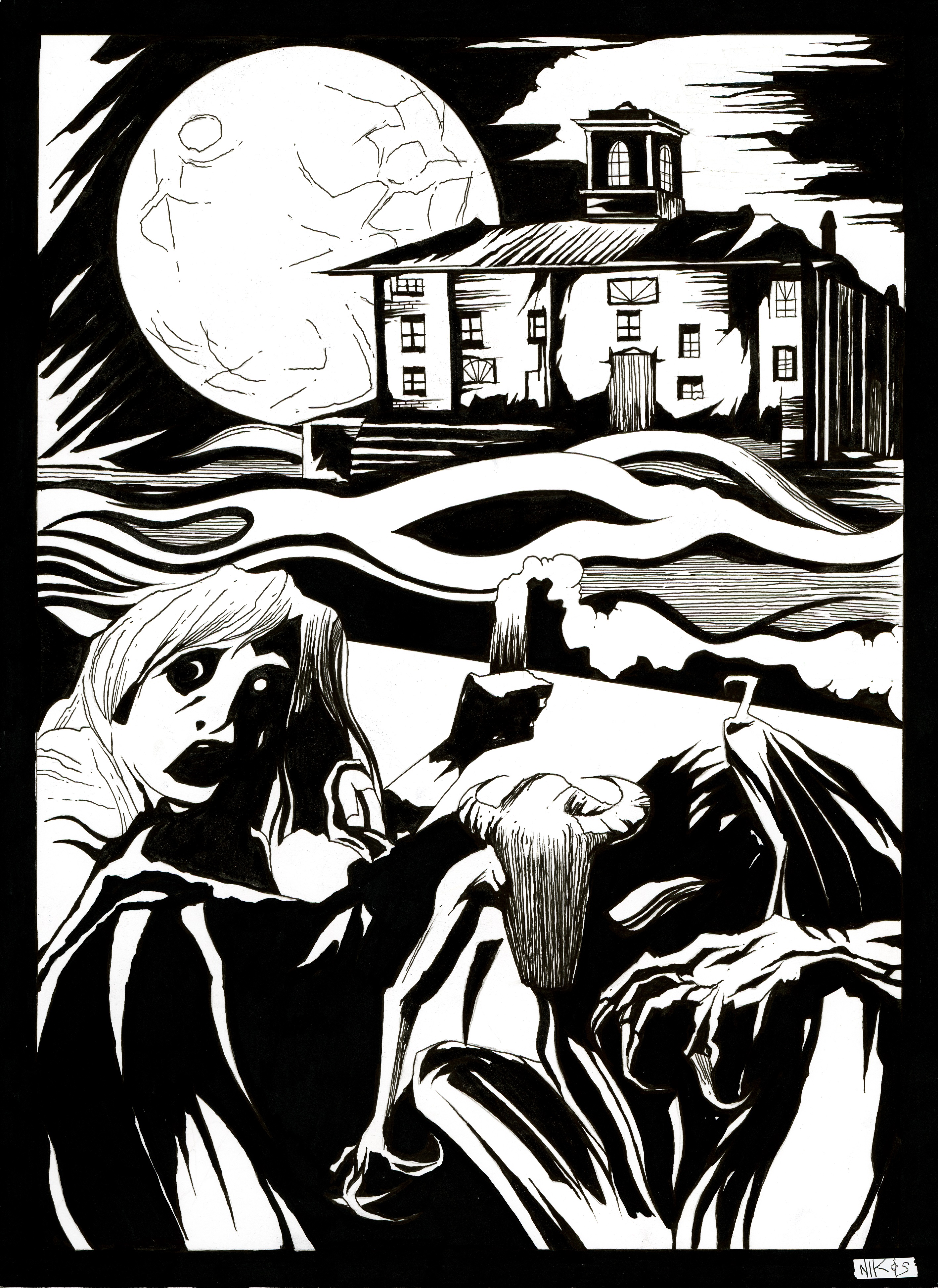 She willed her eyes to blink. Breaking focus took the greatest effort. Darby hurried over to the window, thick tears clotting in her eyes. Somehow, she choked the vomit back down. The weight of the plastic case hanging from a strap of pink beads on one shoulder helped bring her out of the spell. She pulled the lunchbox-turned-shoulder bag against her heart. The wind smacked a branch against the window. Darby shrieked, scurried between two of the nearest beds, and shook as the clouds opened up and rain drilled against the manor’s exterior with fresh rage.